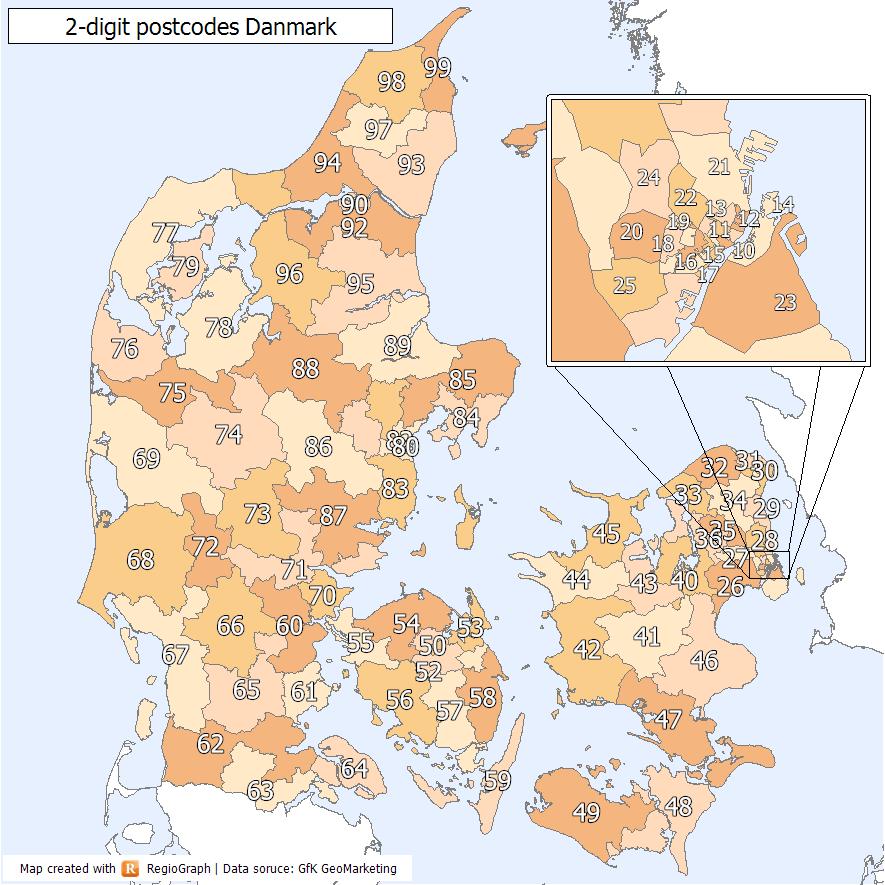 Denemarken postcode kaart